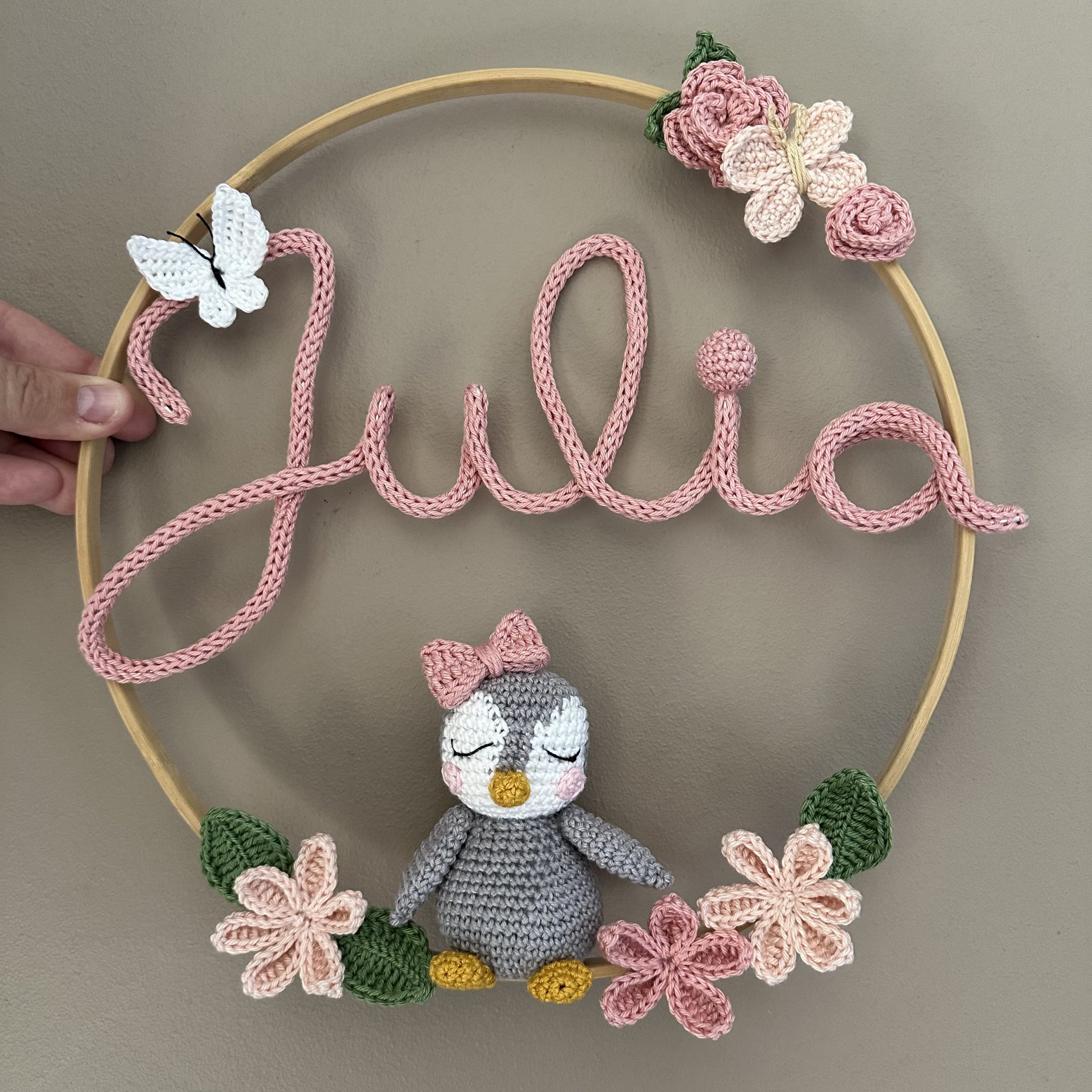 Soyez le premier à laisser votre avis sur “Couronne Prénom – Pingouin thème floral”